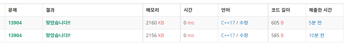 4일, 3일, 2일, 1일을 보면서 이미 해당 날짜가 차지되어 있는지 확인하고