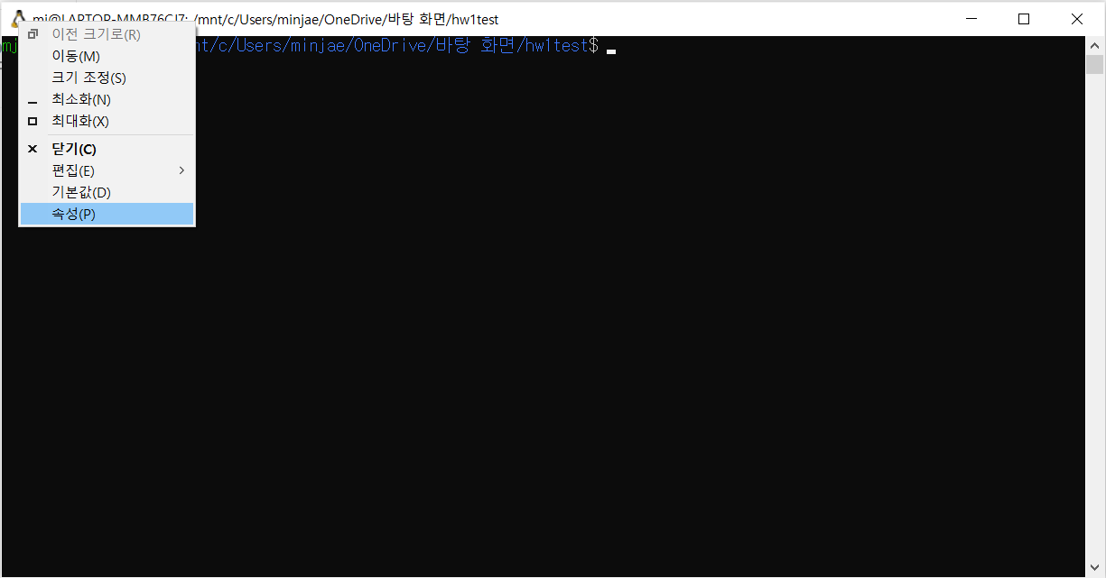 상단의 리눅스 펭귄을 우클릭하면 속성을 찾을 수 있습니다.