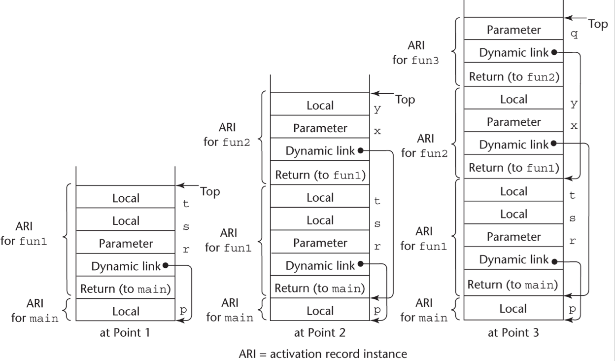 함수가 실행될 때 스택 영역에 activation record가 쌓인다.