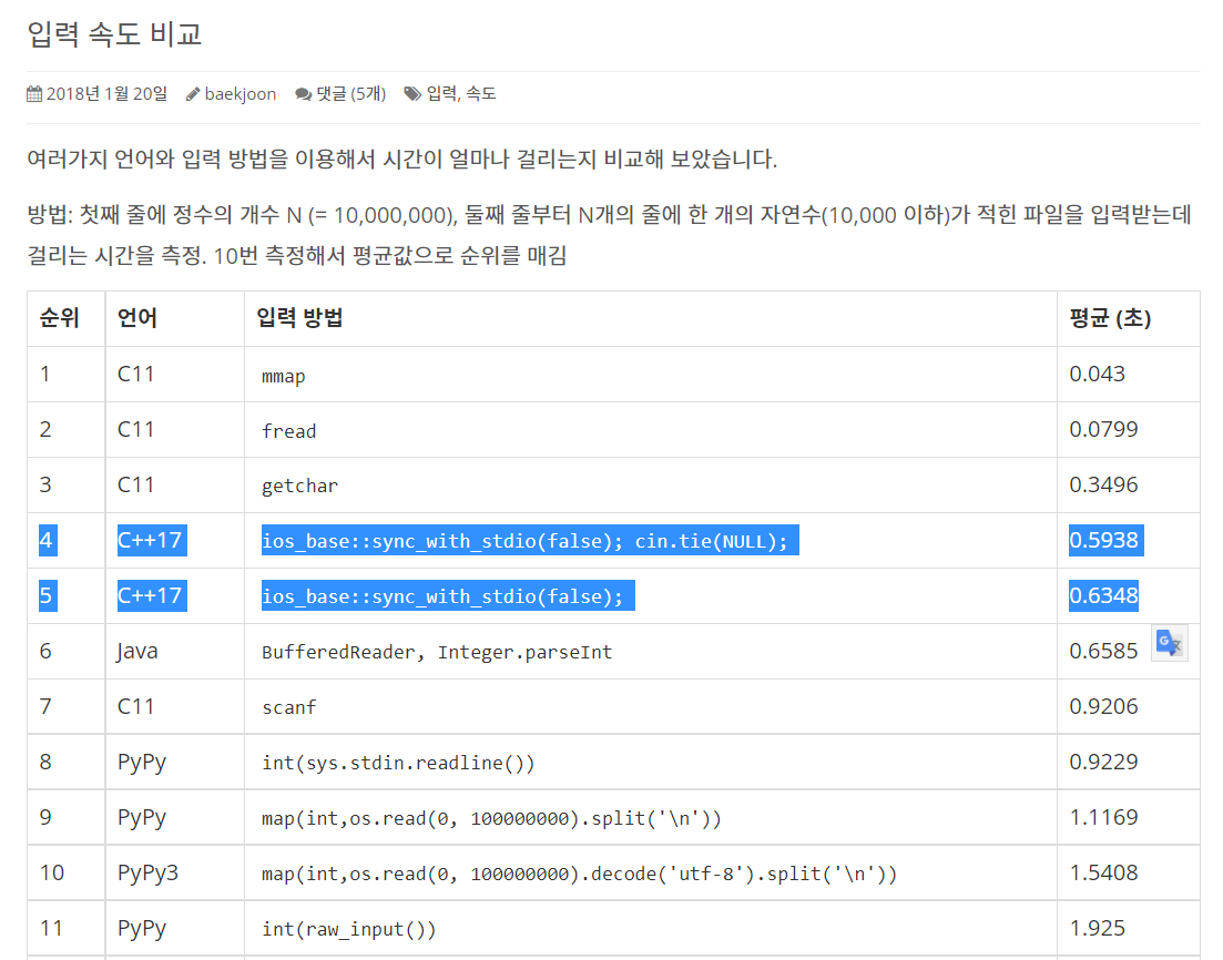 입출력 시간을 백준에서 비교한 글이 있습니다.