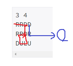 크기가 N×M인 미로가 있고, 미로는 크기가 1×1인 칸으로 나누어져 있다. 미로의 각 칸에는 문자가 하나 적혀있는데, 적혀있는 문자에 따라서 다른 칸으로 이동할 수 있다. 어떤 칸(r, c)에 적힌 문