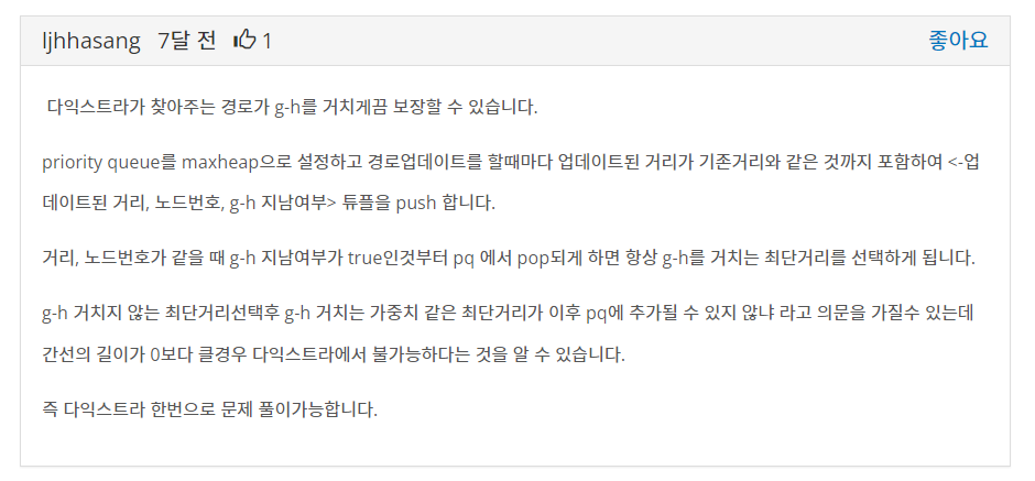 그래서 g-h 간선을 지났는지 여부를 따로 저장해주면서 확인하면 이 문제를 해결 할 수 있다.