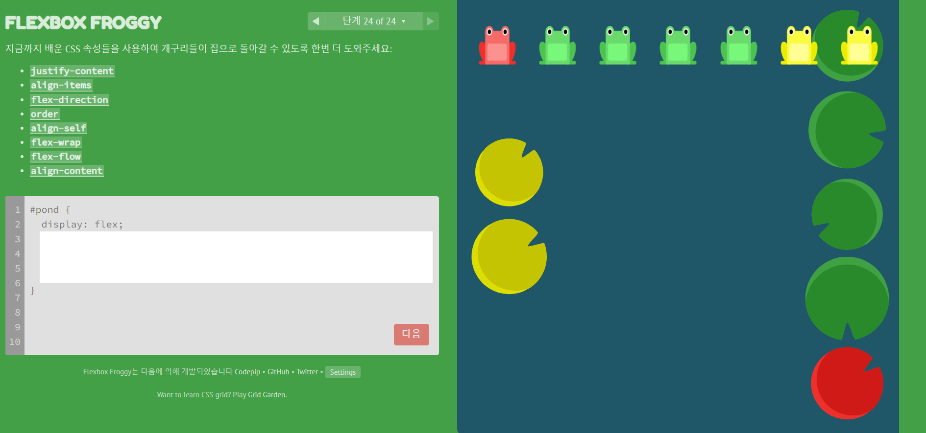 css flex를 응용해서 공부해보기 좋은 사이트입니다.