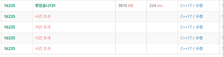하지만 그러면 시간초과로 틀립니다.