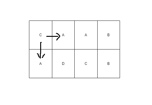 다음과 같이 알파벳으로 이루어진 보드가 주어질 때