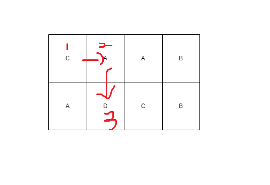 좌측 상단(C)에서 시작해서 상하좌우로 이동하여