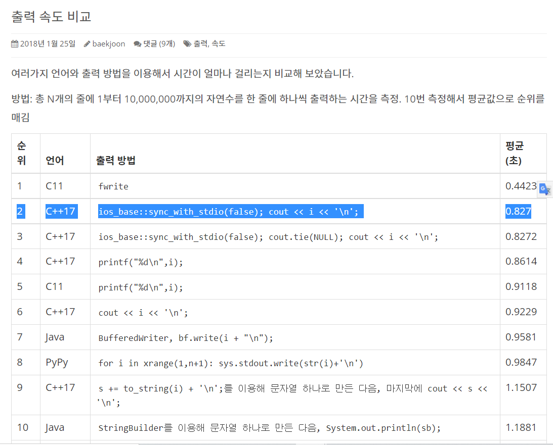 입출력 시간을 백준에서 비교한 글이 있습니다.
