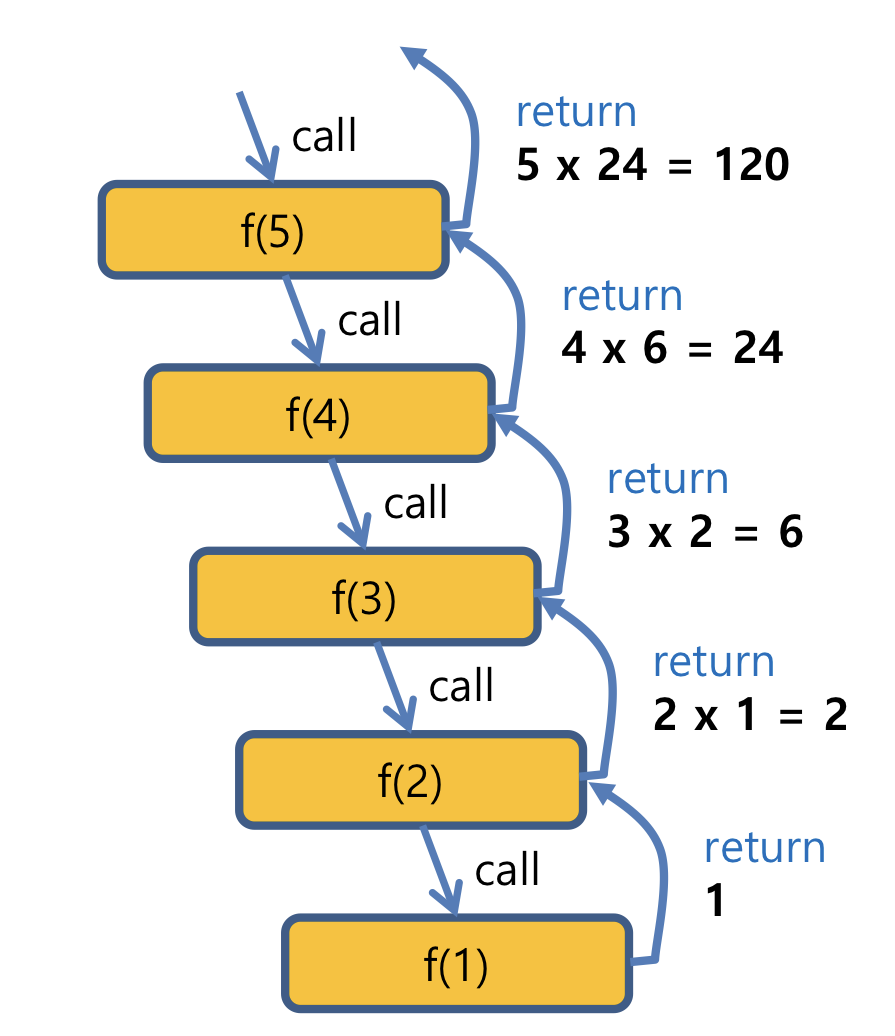 스택을 보면 함수를 실행할 때마다 Activation Record를 기록하기 위해 메모리를 추가적으로 사용한다.