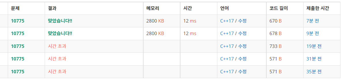 | 백준 9938번 : 방 청소 dis-joint set C++ (0) | 2022.03.01 |