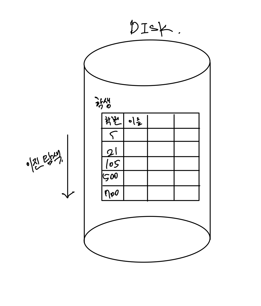 하지만 해당 학번이 디스크 어느 위치에 존재하는지 나타내주는