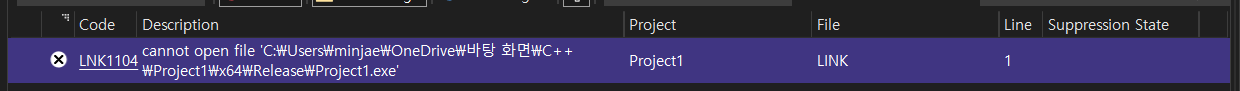비주얼스튜디오에서 C++로 가끔 컴파일을 하다보면 저런 오류가 발생한다.