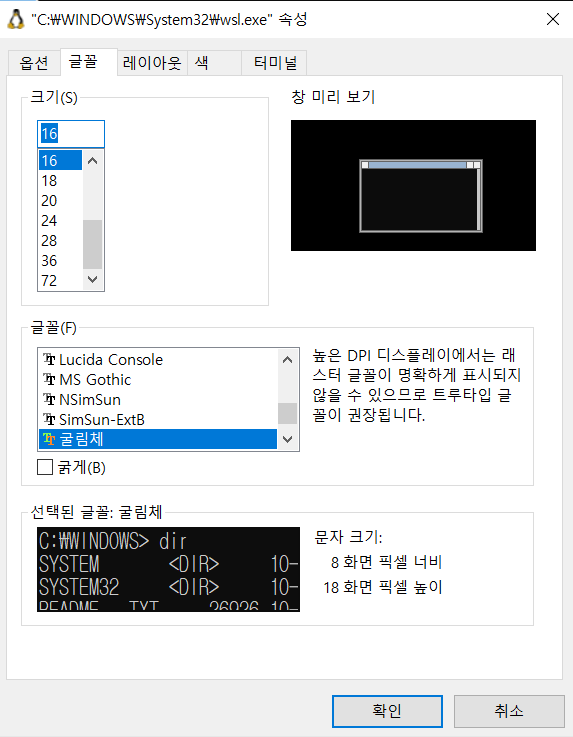 속성에서 글씨체와 글씨크기등 편한대로 조작이 가능합니다.